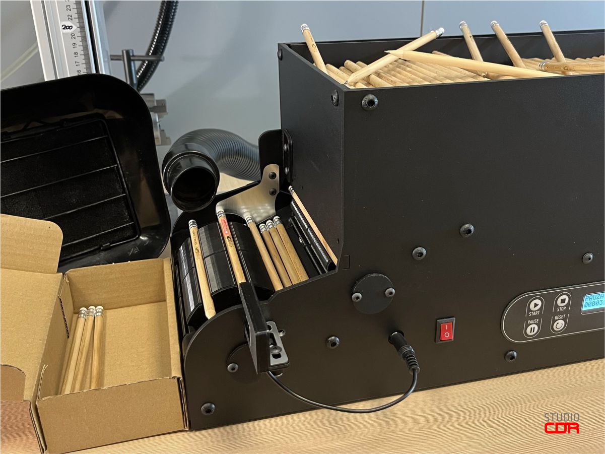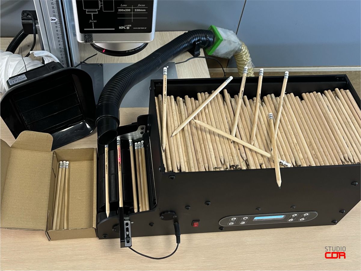 Dzięki automatycznemu procesowi podawania ołówków pod źródło lasera ZAOSZCZĘDZISZ CZAS i PIENIĄDZE.