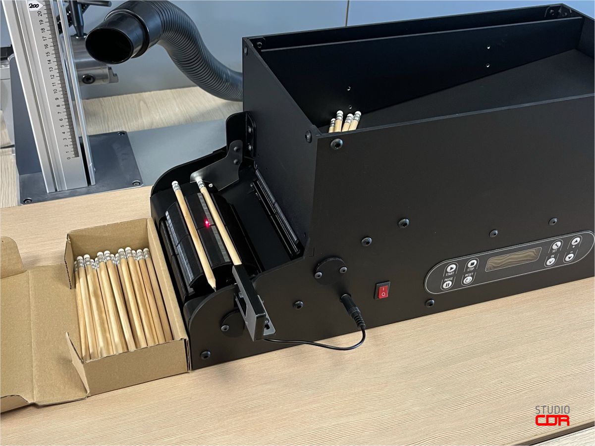 Dzięki automatycznemu procesowi podawania ołówków pod źródło lasera ZAOSZCZĘDZISZ CZAS i PIENIĄDZE.
