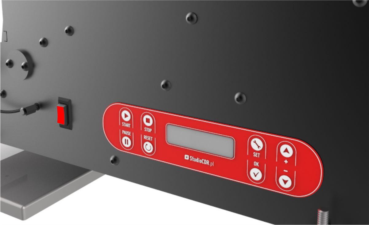 Urządzenie jest kompatybilne z każdą znakowarką dzięki podłączeniu pod włącznik nożny lub dowolny przycisk Start.